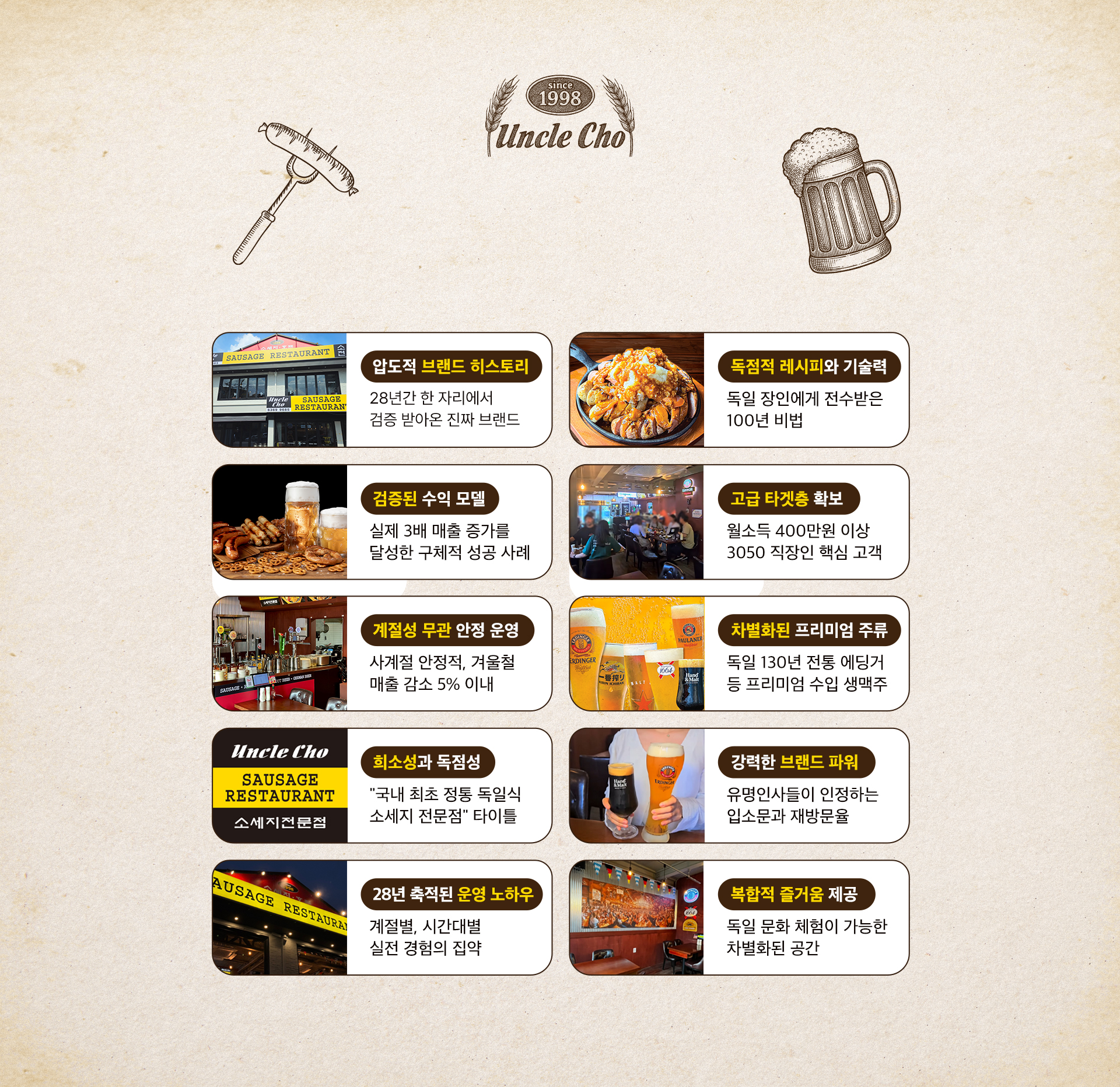 대한민국 최초 정통 독일식 소세지 전문점 엉클조소세지가 탄생했습니다.